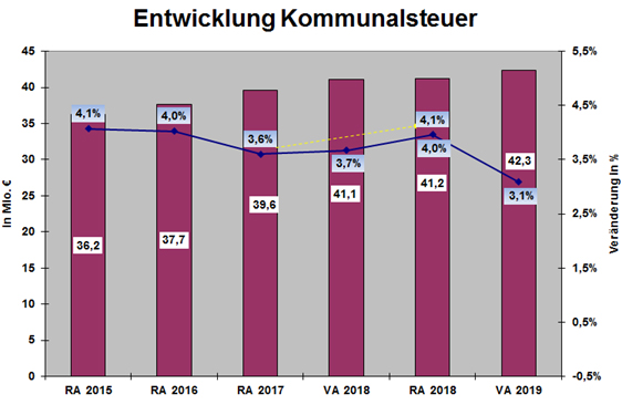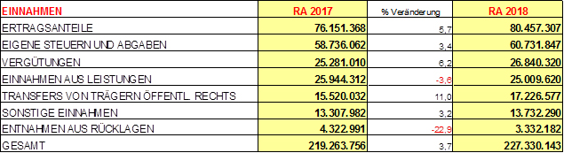 Ertragsanteile: Hier gab es von 2017 auf 2018 eine Steigerung um 4,31 Mio. Euro, das ist ein Plus von 5,7 Prozent.