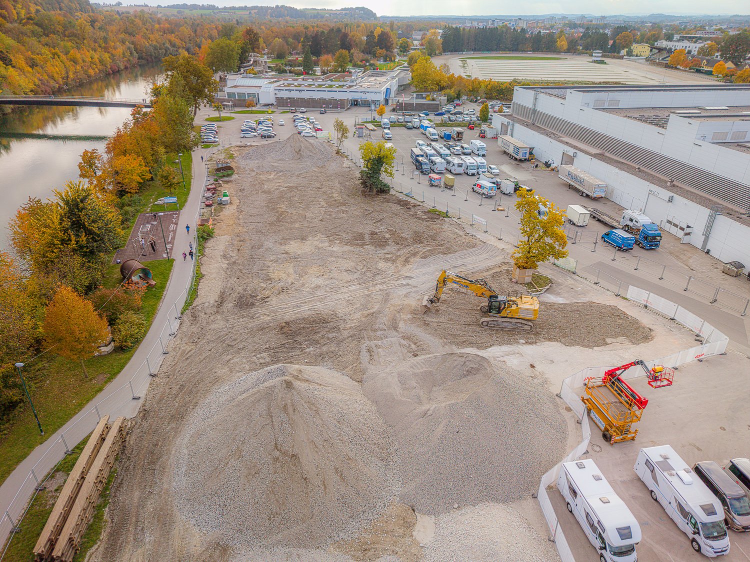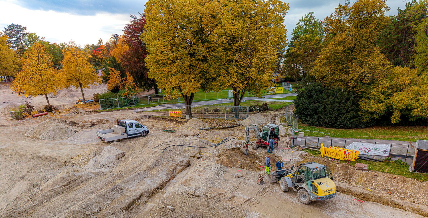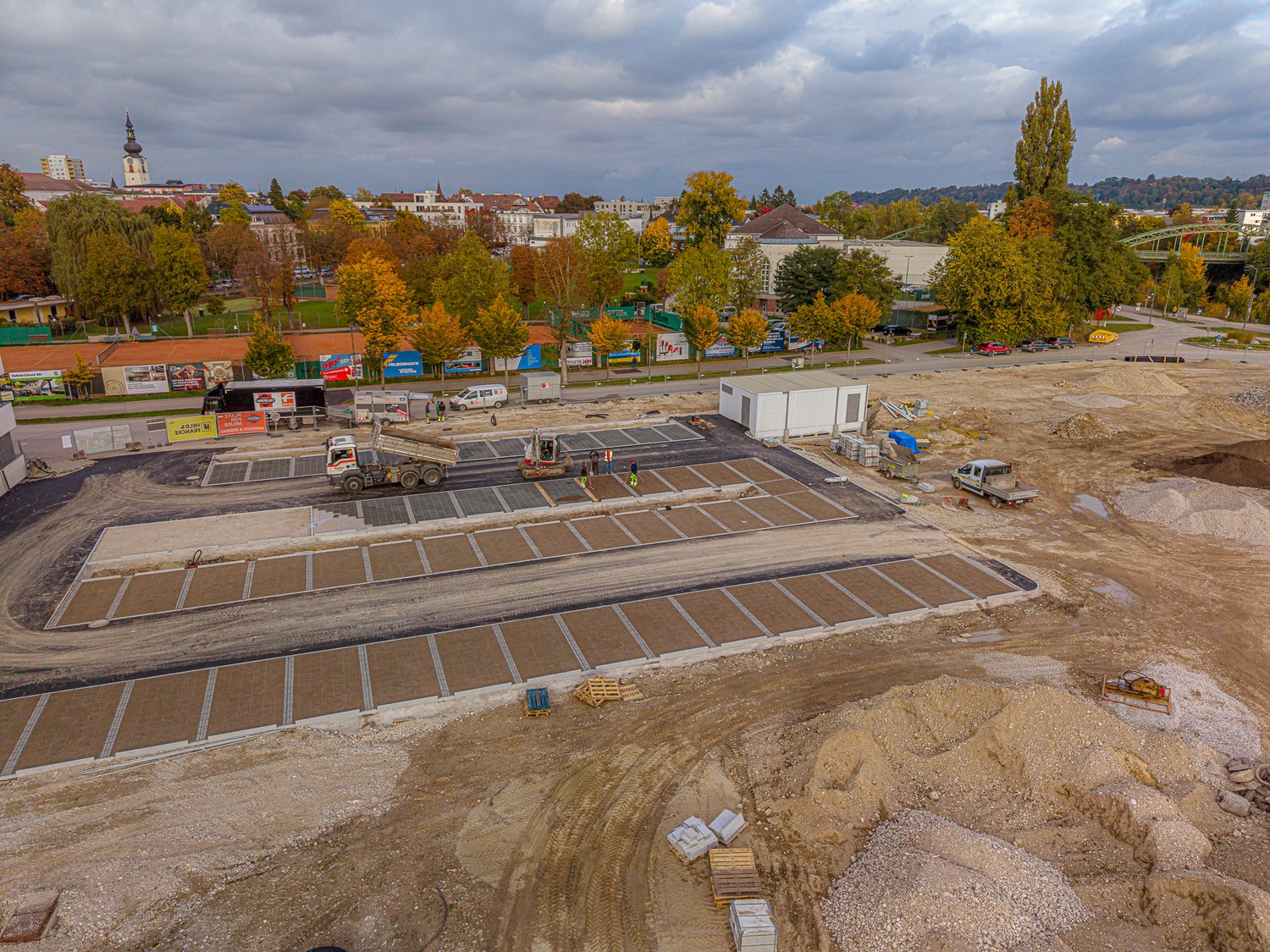 Ein Meilenstein der vergangenen Wochen war die Errichtung des Transformatorgebäudes der eww Gruppe beim entstehenden Parkplatz südlich des Welios. Achtung: Sowohl für den Parkplatz wie auch für alle anderen Teilflächen im Volksgarten gilt Folgendes: Auch wenn Teilbereiche bereits fertig sind oder fertig aussehen, sind das Betreten und die Benützung nicht erlaubt! Weiters hat die beauftragte Firma Swietelsky AG die Abbrucharbeiten so weit finalisiert, dass der Caravan Salon Austria am Messegelände von Mittwoch, 15. bis Sonntag, 19. Oktober ungehindert stattfinden kann.